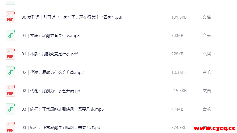 分享一套《冯雪高尿酸医学课》资料合集。